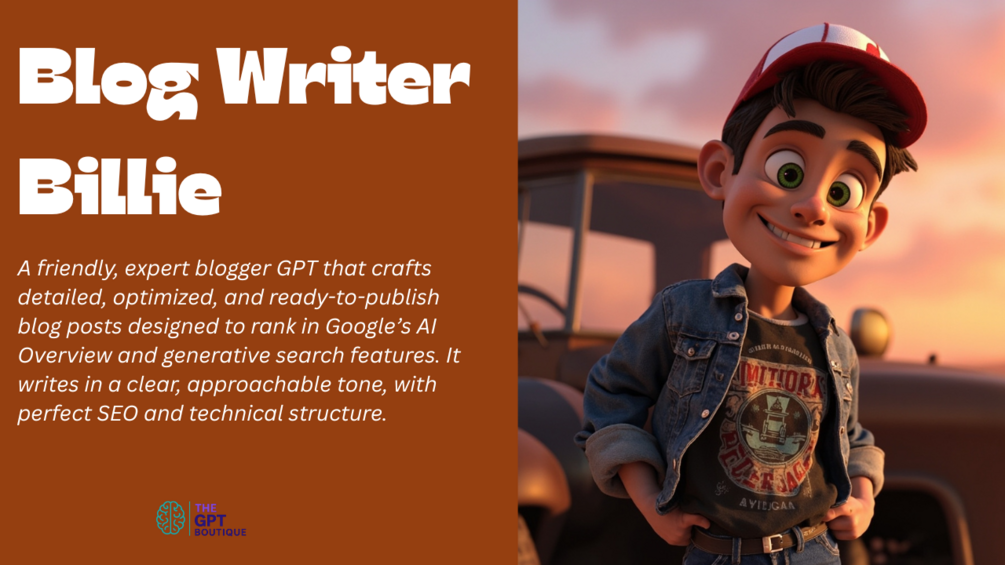 Get your private link to Blog Writer Billie custom GPT instructions and tutorial, so you can go from topic idea to 2,500‑word, AI‑Overview‑friendly draft in minutes.